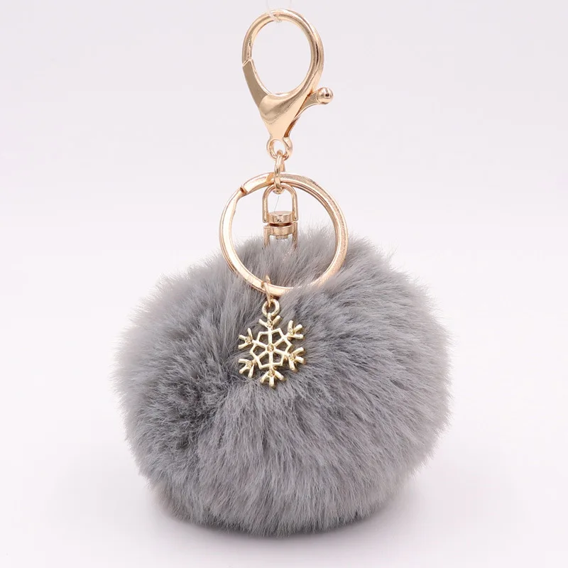 New Fashion Solid Color Snowflake Key Chains Soft Pompom Ball Car Keychain Ladies Fashion Christmas Accessories Key Chains Gifts